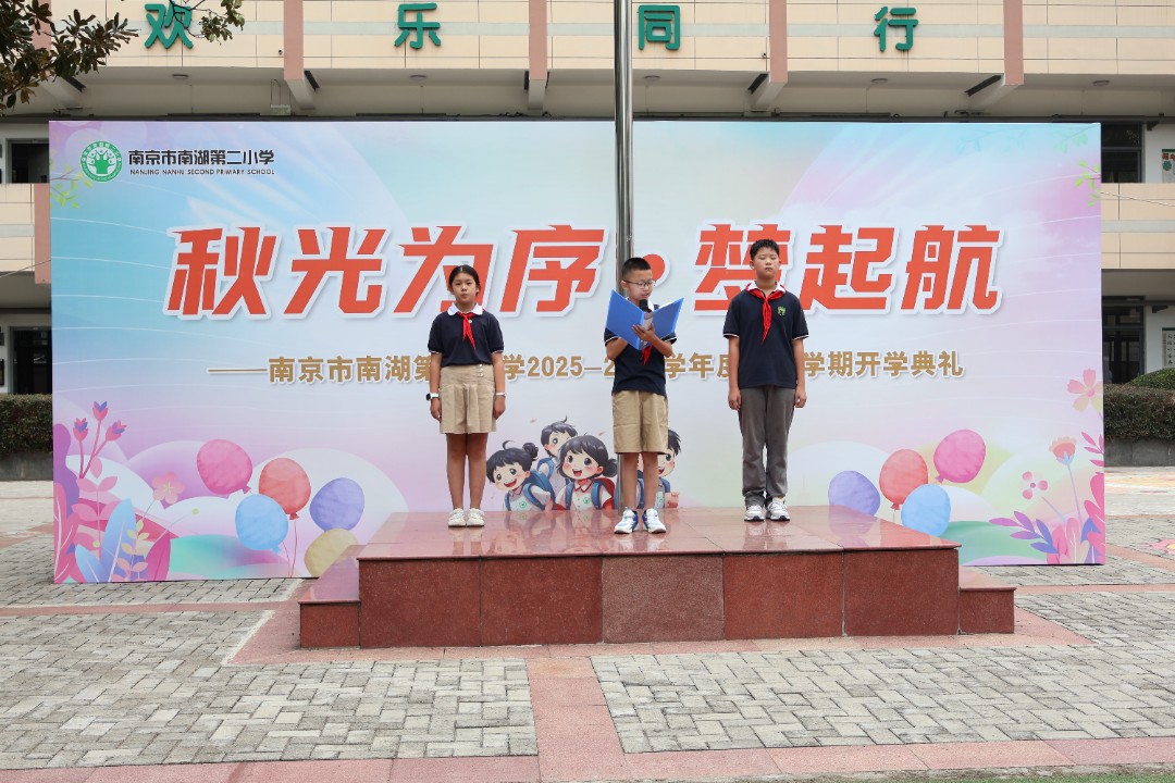 金秋送爽,丹桂飘香,熟悉的校园再次充满欢声笑语。2025 年 9 月1日上午,南湖二小全体师生齐聚操场,共同迎来 2025-2026 学年第一学期开学典礼,以 “秋光为序・梦启航”为主题,开启新学年的美好篇章。鲜艳的五星红旗冉冉升起,嘹亮的国歌响彻校园,每一个敬礼、每一声歌唱,都满含着二小师生对祖国的热爱与对新学年的憧憬。新学期的成长离不开学校的关怀与指引。