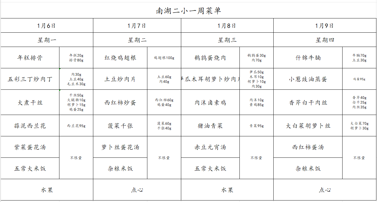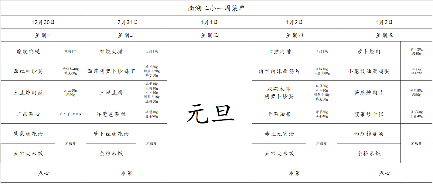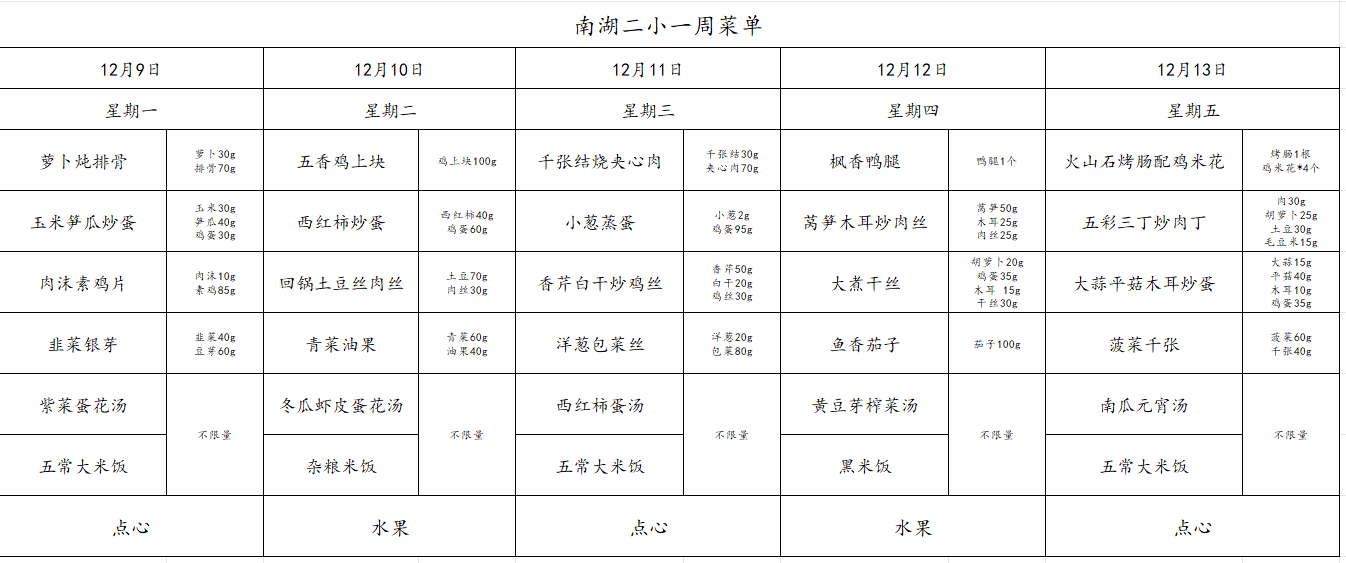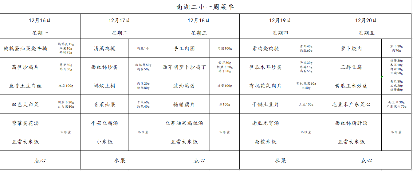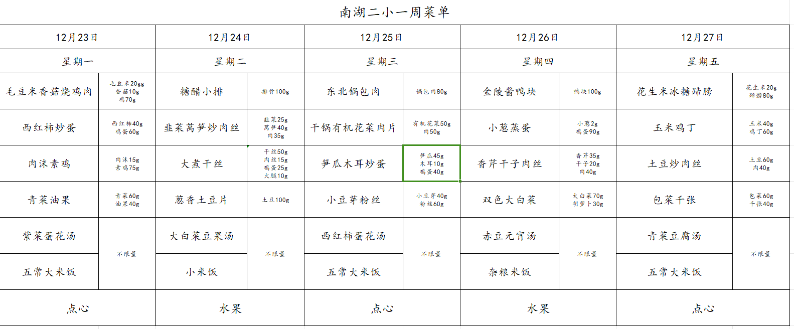 2024——2025学年第二学期第一、二周学生午餐食谱