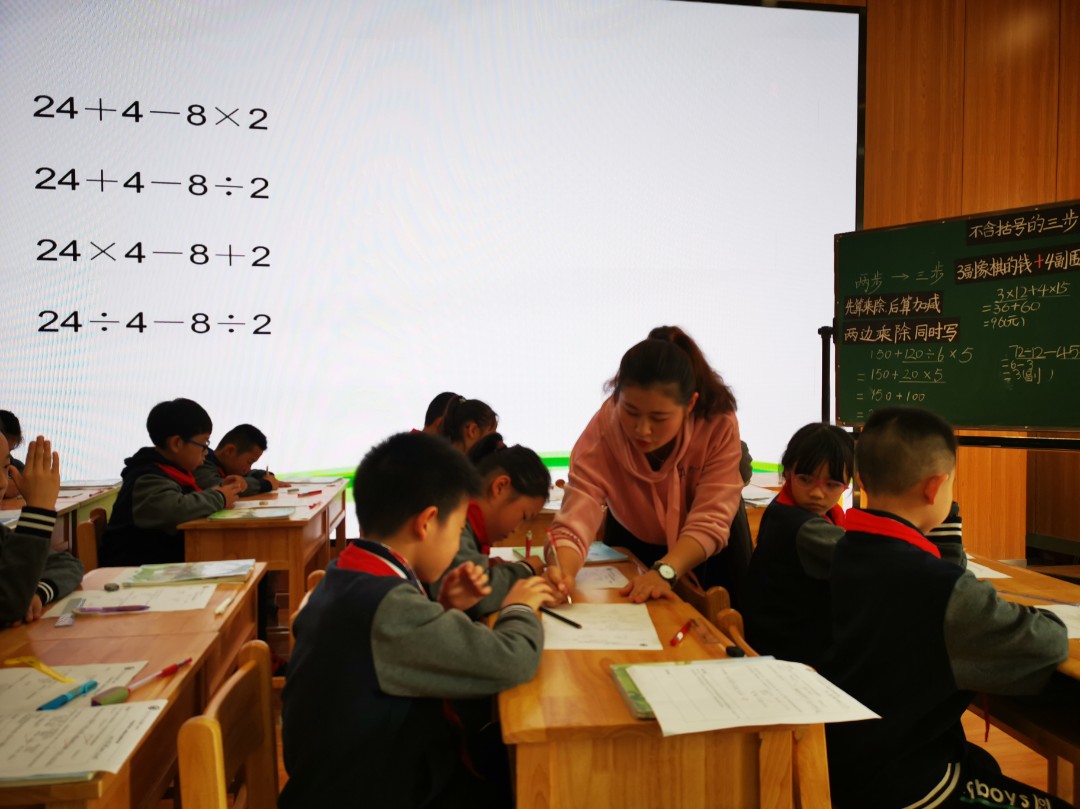 2020年11月10日下午,在南湖二小大礼堂开展了以“立足学生实际,建构理学思维”为主题的建邺区小学数学第二盟区教研活动。盟区内五所学校全体数学老师参与了此次活动。首先由南湖二小的姜艾明老师执教了四年级上册的《不含括号的三步运算》。姜老师充分突出了南湖二小的理学特色,课前整理呈现学情分析,课例从一般到特殊,顺应学生的认知发展,练习设计分层设计,颇有趣味。祖杰