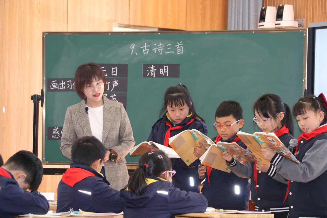 走进三月,春季绵绵细雨过处,海棠树不甘落后,光秃秃的枝丫长出了新芽,海棠花儿毫不逊色,默默无闻地吐出淡雅的芳香,借着春风的力量把花香送到校园的各个角落。2021年3月22日下午,南京市南湖第二小学承办了以“研读统编教材 落实综合学习单元”为主题的建邺区小学三年级语文教研活动。建邺区各个学校三年级语文老师参与了此次活动。活动伊始,全体语文老师观摩了由南湖二小教