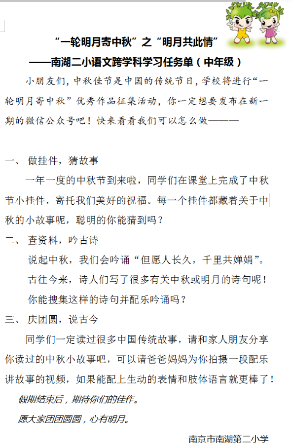 一轮明月寄中秋——南湖二小四1中队语文跨学科主题学习活动