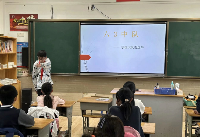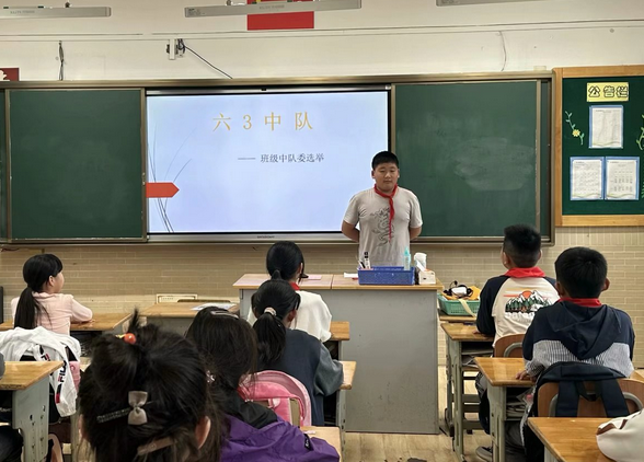 六(3)中队在周五进行班委改选,先自我推荐然后进行竞选演讲,最后民主投票,最终产生7名班委为班级服务。