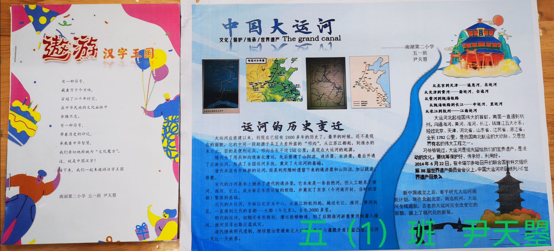 汉字的魅力无穷,深深吸引着队员们,利用课余时间,队员们对汉字展开研究,收集了大量的资料,精心制作了小报。跟着课本去旅行,队员们在收寻祖国的名胜古迹,让我们大开眼界。