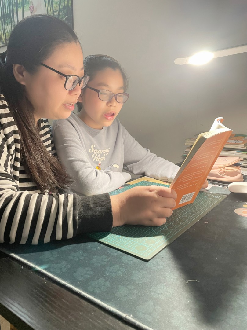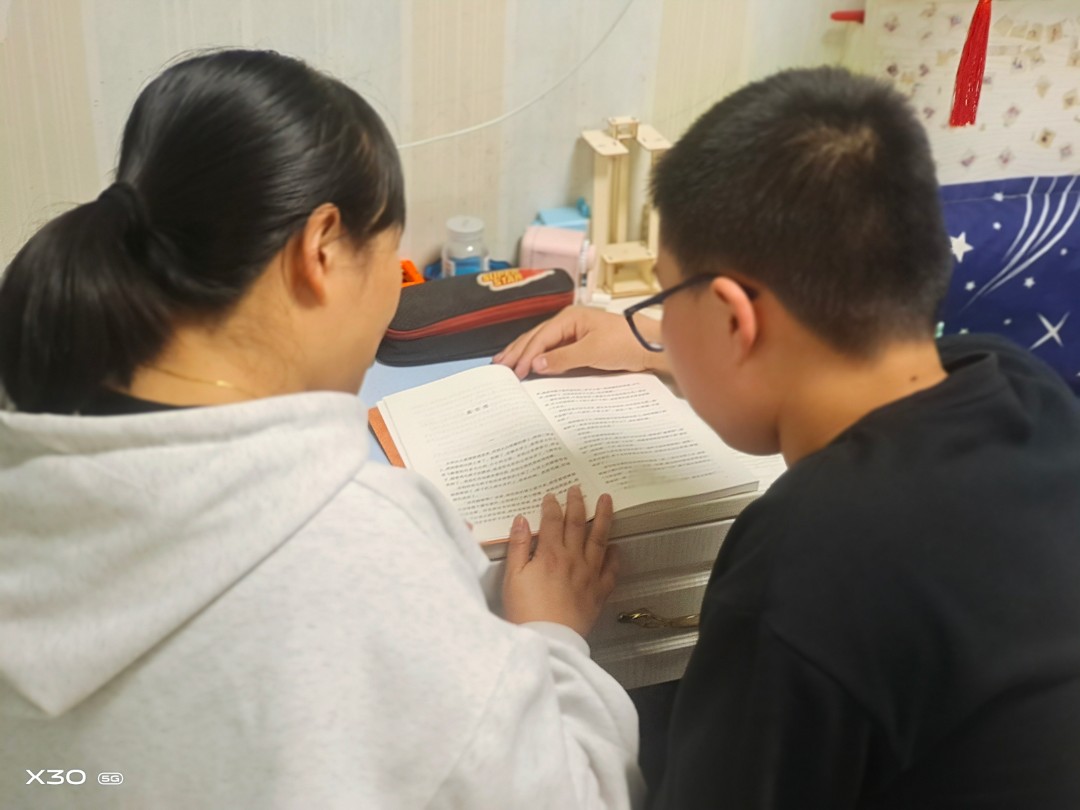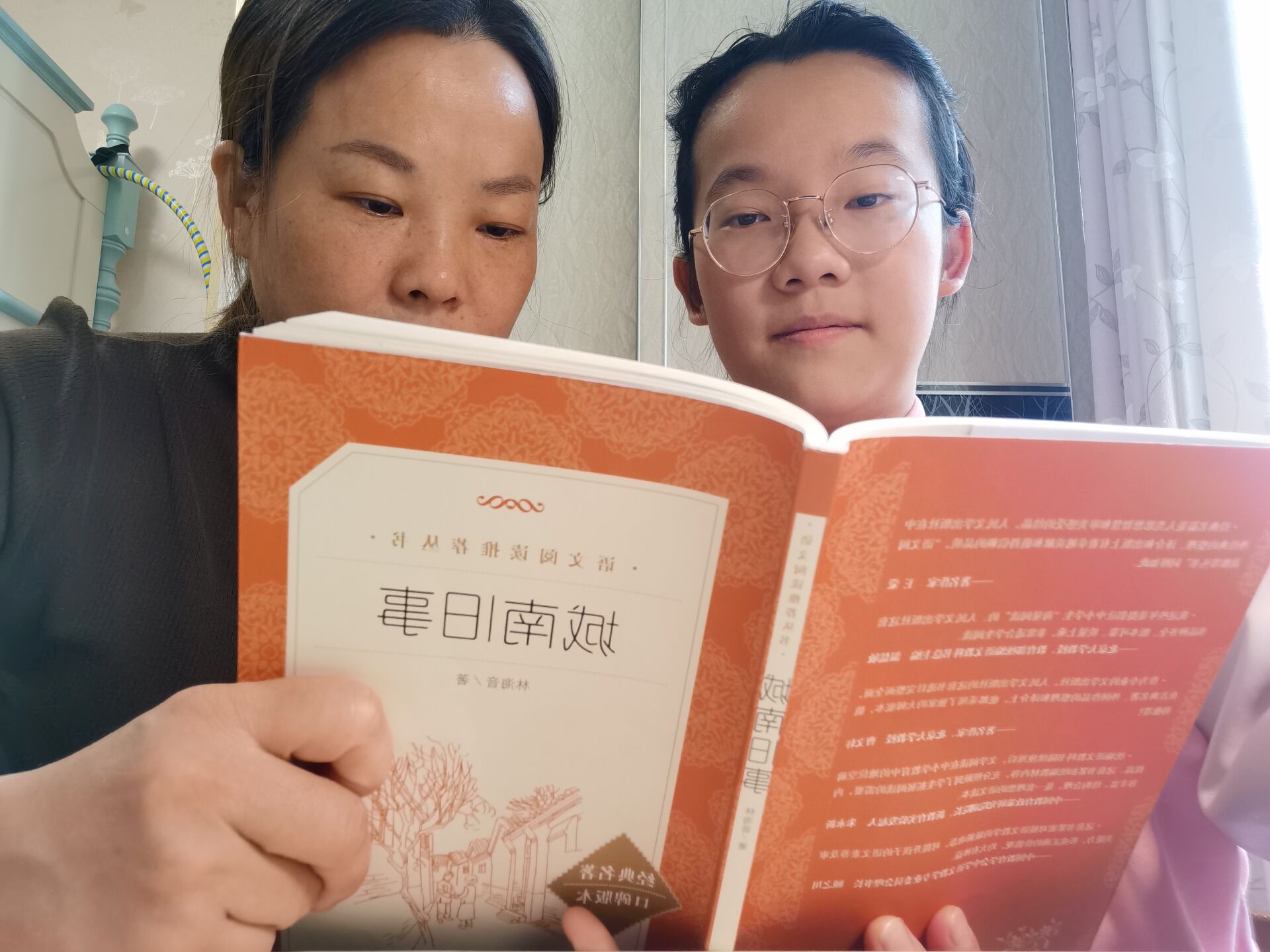 一次次读书的经历,让我一次次成长。在书中和高尚人物对话,我一次次收获了无尽的力量!又是一个周末的夜晚,灯光下,面对如山的作业,我充满信心的投入到书本中,我相信,只要拥有信心,我一定能在无边的学海中乘风破浪,在巍峨的书山上勇攀高峰!有一种共振来源于我和妈妈一起在文学中感动、难以自拔!(文字来源:严子轩)